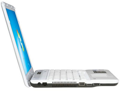 На противоположной стороне ноутбука находятся самые востребованные порты. Среди них HDMI, о котором упоминалось ранее, 15-контактный видеовыход VGA для подключения внешнего монитора и порт eSATA, совмещенный с USB. Данная комбинация позволит передавать данные со скоростью, в 5 раз большей, нежели через обычный интерфейс USB. На этом список портов не заканчивается. Слева можно увидеть слот расширения ExpressCard/34, гнездо для подзарядки и разъем сетевого контроллера RJ-45.