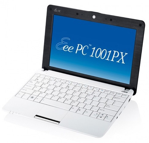 Беспроводные сети станут доступны после активации адаптера Wi-Fi (802.11a/b/g). Данная модель отличается очень эффектным внешним видом, потому что корпус Eee PC 1001PX – белый. Толщина устройства составляет 36 мм, а весит нетбук 1.26 кг. В течение 5 часов Вы можете не думать о подзарядки батареи, ведь оснащен субноутбук литий-ионным аккумулятором емкостью 4400 мАч. Приобрести Asus Eee PC 1001PX можно за 10.5 тыс. рублей.