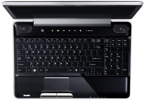 Клавиатура Satellite A500 , как уже было отмечено раньше, глянцевая. Хотя стоит отметить, что она не такая маркая, как, к примеру, крышка лэптопа. Размеры ноутбука позволили оснастить его полноразмерной клавиатурой, причем кнопки большие и удобные. Несомненно, к плюсам так же можно отнести наличие сенсорных мультимедийных кнопок и решение, связанное с кнопкой «Fn». Теперь не нужно запоминать функциональность той или иной кнопки. Нажимая клавишу «Fn», на дисплее появляется вспомогательное окно, которое подсказывает, какая кнопка отвечает за включение/выключение той или иной функции. Тачпад солидных размеров, заметно смещенный влево, мало выделяется на фоне рабочей области. Лишь тактильно можно определить его присутствие. Но на безупречной работе это никак не сказывается. Функция Multi-Touch не будет лишней при работе, к примеру, с изображениями. Так называемые «мышиные» кнопки больших размеров. Их функционирование нареканий вызвать не должно.