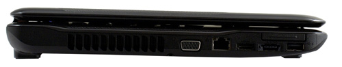 Для подключения монитора применяются видеоадаптеры цифровой HDMI и аналоговый VGA. Подсоединить наушники и воспользоваться микрофоном можно при подключении их через аудиоразъёмы. Также в наличии 100 мегабитный сетевой адаптер RJ-45 и слот формата ExpressCard.