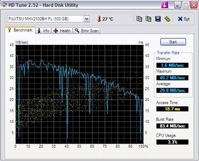 Результаты теста накопительного жесткого диска, полученные программой HD Tune: